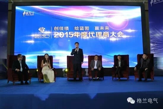 2015年4月8日,格蘭電氣在浙江嘉興召開“創(chuàng)佳績、繪藍(lán)圖、贏未來”代理商大會(huì)。格蘭電氣董事長陳國祥、格蘭企業(yè)高管和核心代理商參加了會(huì)議。