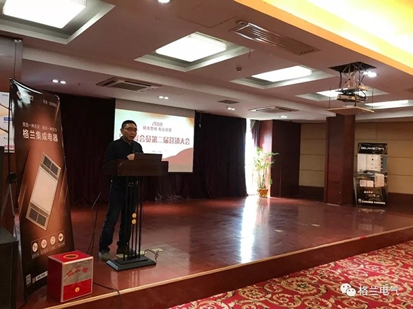 隨后,格蘭電氣營銷總經(jīng)理胡總上臺發(fā)言致辭。胡總回顧了格蘭電氣公司二十余年的發(fā)展史,介紹了各類產(chǎn)品系列、新品、營銷規(guī)劃等方面。此外,胡總也分析了電工電氣行業(yè)的大環(huán)境和市場的現(xiàn)狀,面臨原材料價格的飛速上漲,各項成本的大幅上升,公司也壓力倍增,市場銷售的任務(wù)愈加艱巨,面對這些市場壓力,胡總就公司2018年的營銷規(guī)劃和市場戰(zhàn)略調(diào)整也做了簡短的描述和傳遞,受到大家的一致認(rèn)可,同時胡總也表示,大家應(yīng)該團(tuán)結(jié)一心,共同努力,加強(qiáng)客戶的管理,提高市場的洞察和創(chuàng)新能力,為各個經(jīng)銷商提供更寬廣的平臺,從而促進(jìn)各合作伙伴的新一輪的快速增長。