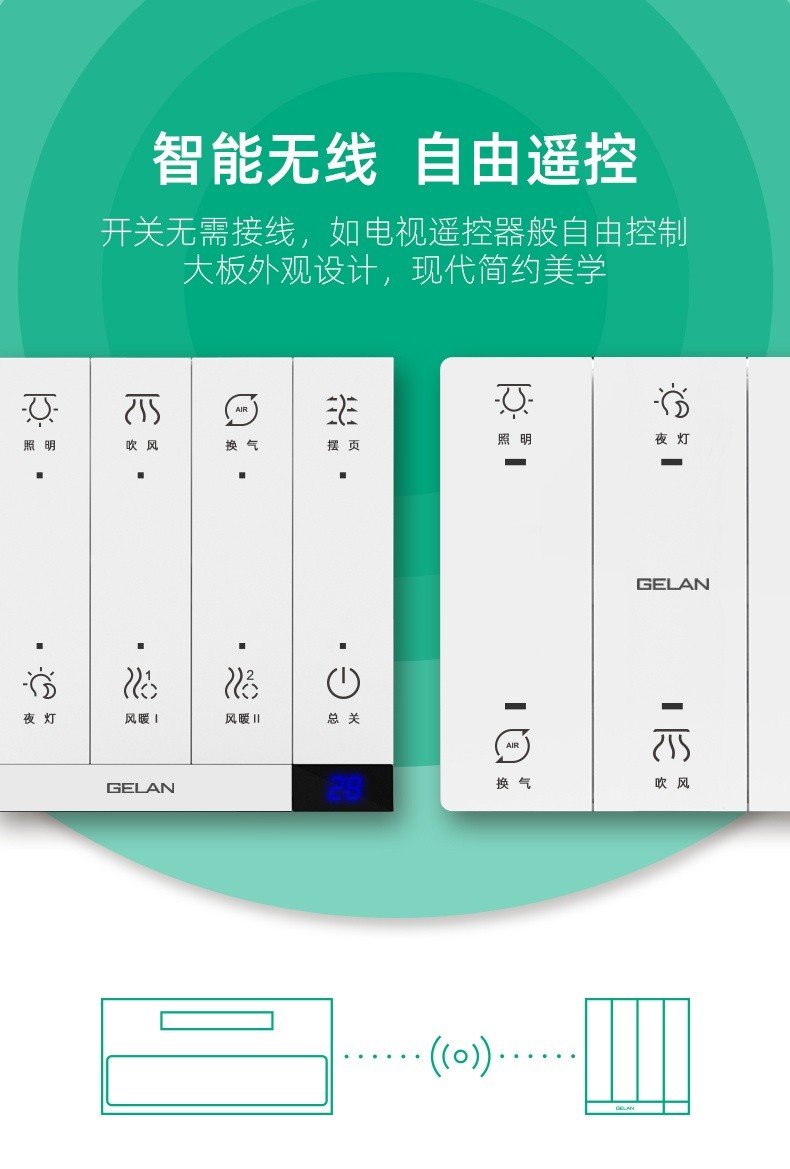 每天你都在與時(shí)間賽跑,爭(zhēng)分奪秒,每個(gè)寒冬你都在為洗澡而頭皮發(fā)麻,瑟瑟發(fā)抖!直到遇見(jiàn)了GELAN格蘭電氣,你會(huì)發(fā)現(xiàn)每天都如此的美好!GELAN格蘭智暖浴霸給您一個(gè)完美的沐浴享受。