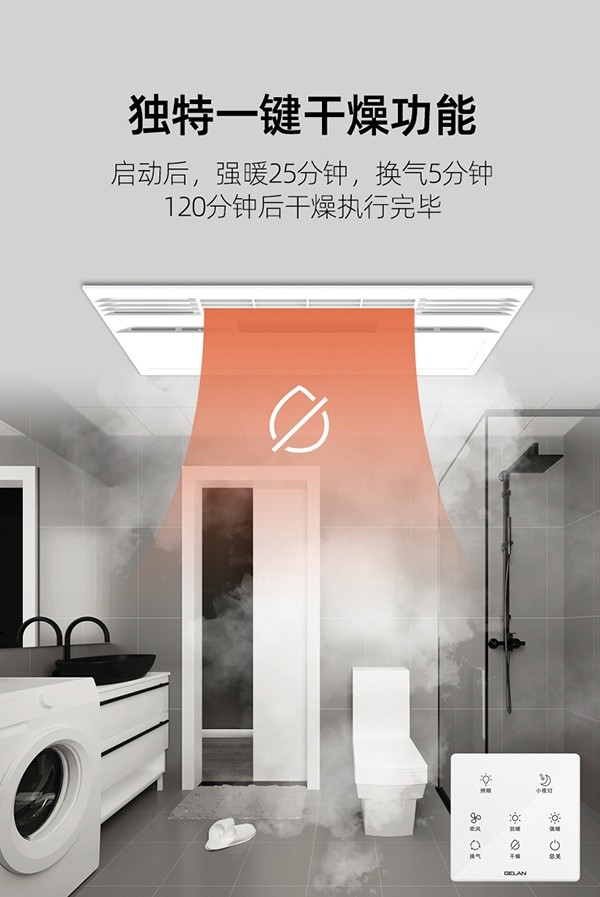 一鍵開啟干燥,加速快速烘干,強(qiáng)勁風(fēng)力吹干水汽,循環(huán)四次可驅(qū)除室內(nèi)干燥,運(yùn)行結(jié)束自行關(guān)機(jī),體驗(yàn)智能生活。